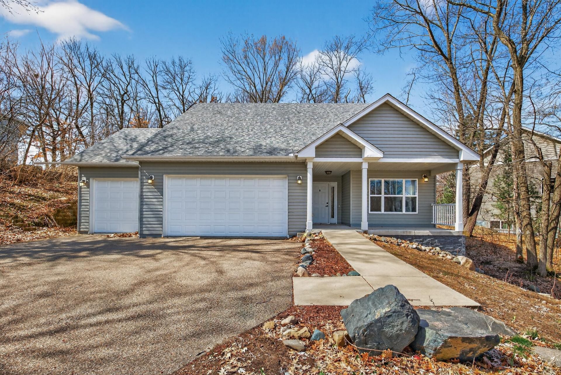 Welcome to Embry Way! This newer construction home offers comfortable main floor living with a functional, open layout. As you enter, you're greeted by a bright main floor bedroom and full bath, perfect for guests or a home office. The open concept living, dining, and kitchen features vaulted ceilings, hardwood floors, stainless steel appliances, and custom maple cabinetry. Step out to the maintenance free deck overlooking a private, wooded lot, ideal for relaxing or entertaining. The spacious primary suite includes a private en suite bath, and main floor laundry adds everyday convenience. The walkout lower level offers a large rec room with built-in cabinetry for great storage, plus a flexible space for a gym, office, or studio. A third bedroom, fourth non-conforming bedroom, and full bath complete the lower level. Located in District 196, this home checks all the boxes!