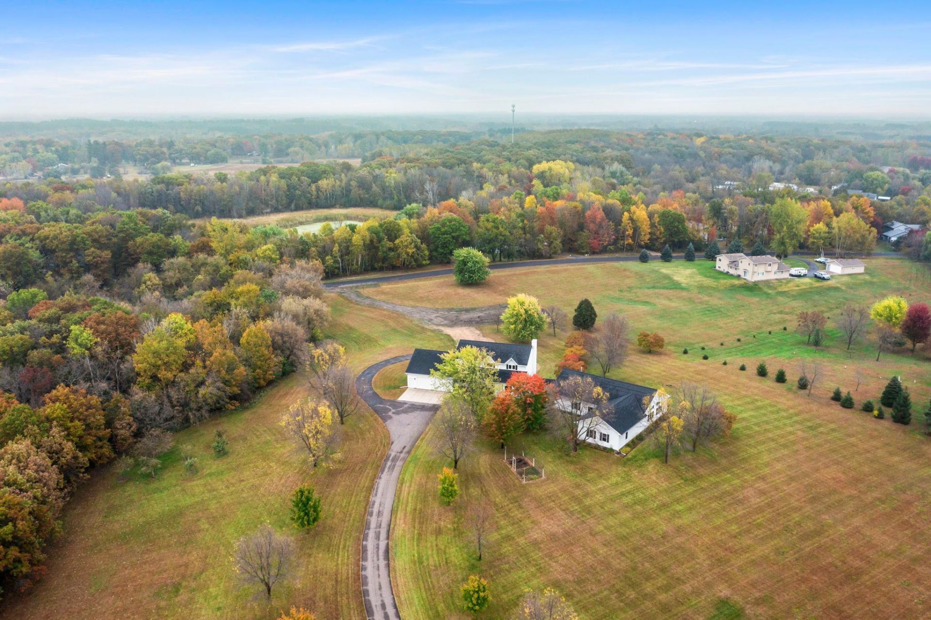 This beautiful 1994 built Two Story home is located on a double lot with 8.9 acres. The home features 4612 FSF for the house with 6 bedrooms, 5 bathrooms, 2 car attached garage & 2 car tuck under garage & 2629 FSF for the in floor heated pool & exercise room. The main floor has a covered front porch, living room, informal & formal dining room w/walkout to deck, kitchen w/custom oak cabinetry, Cambria countertops, master suite with fireplace & bathroom with separate soaking tub & shower & walk in closet, 1/2 bathroom, mud room & main floor laundry. The upstairs features 4 bedrooms with w/i closets & a full bathroom. The basement features a large family room with fireplace and built in cabinetry, a wet bar, non-conforming bedroom {needs closet), 3/4 bathroom, office, utility room and storage room. The pool room is 60 x 35 & exercise room is 30 x 23, which you enter through the basement & it is a indoor heated pool with automatic pool cover, vaulted ceilings, 3/4 bathroom & utility room. The home also has a security system & 6 outdoor security cameras, 3 zone heating & cooling. The upgrades are listed in an attachment, but the septic system is new, newer roof, LP siding and so many other upgrades throughout the home.