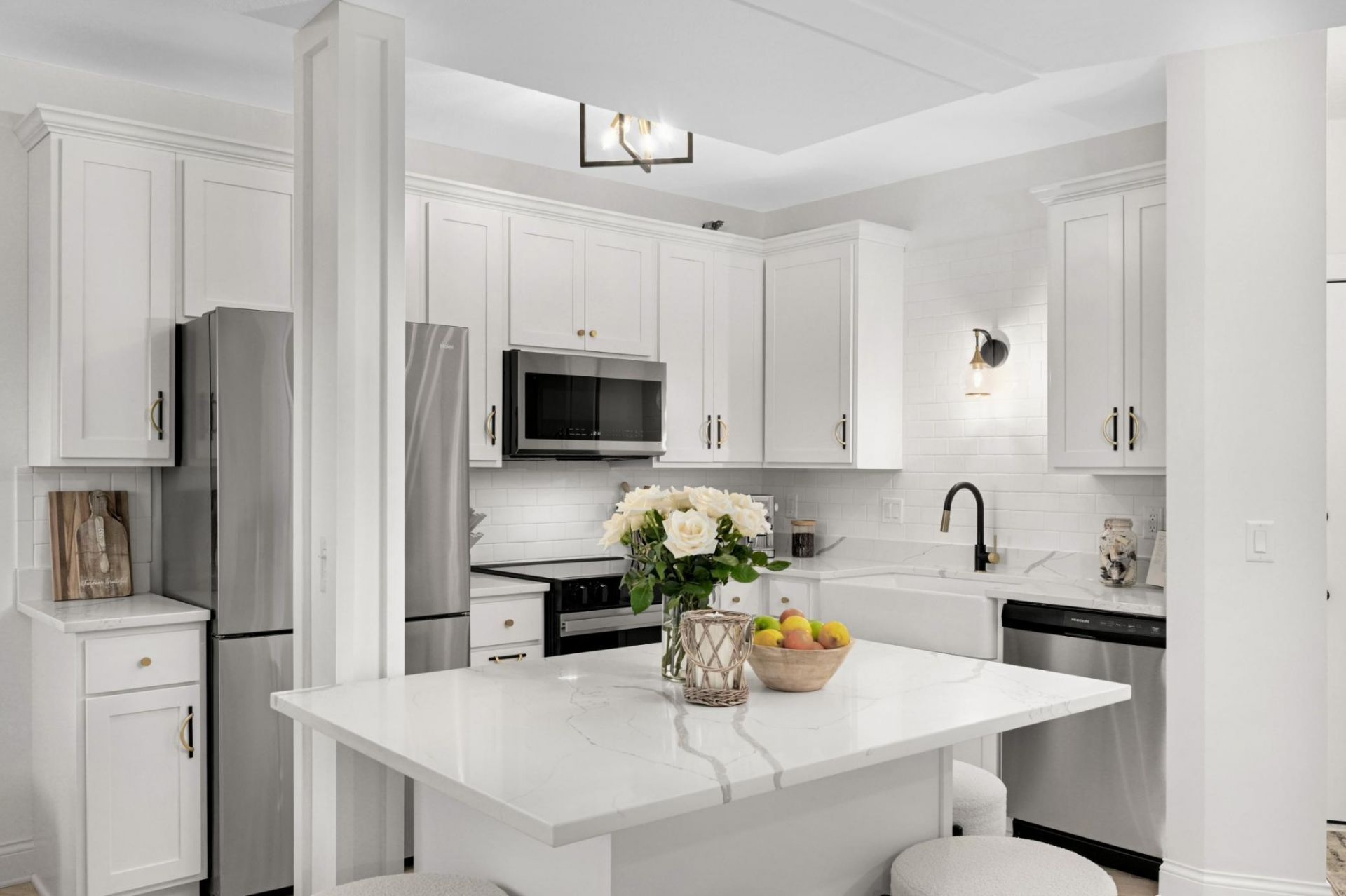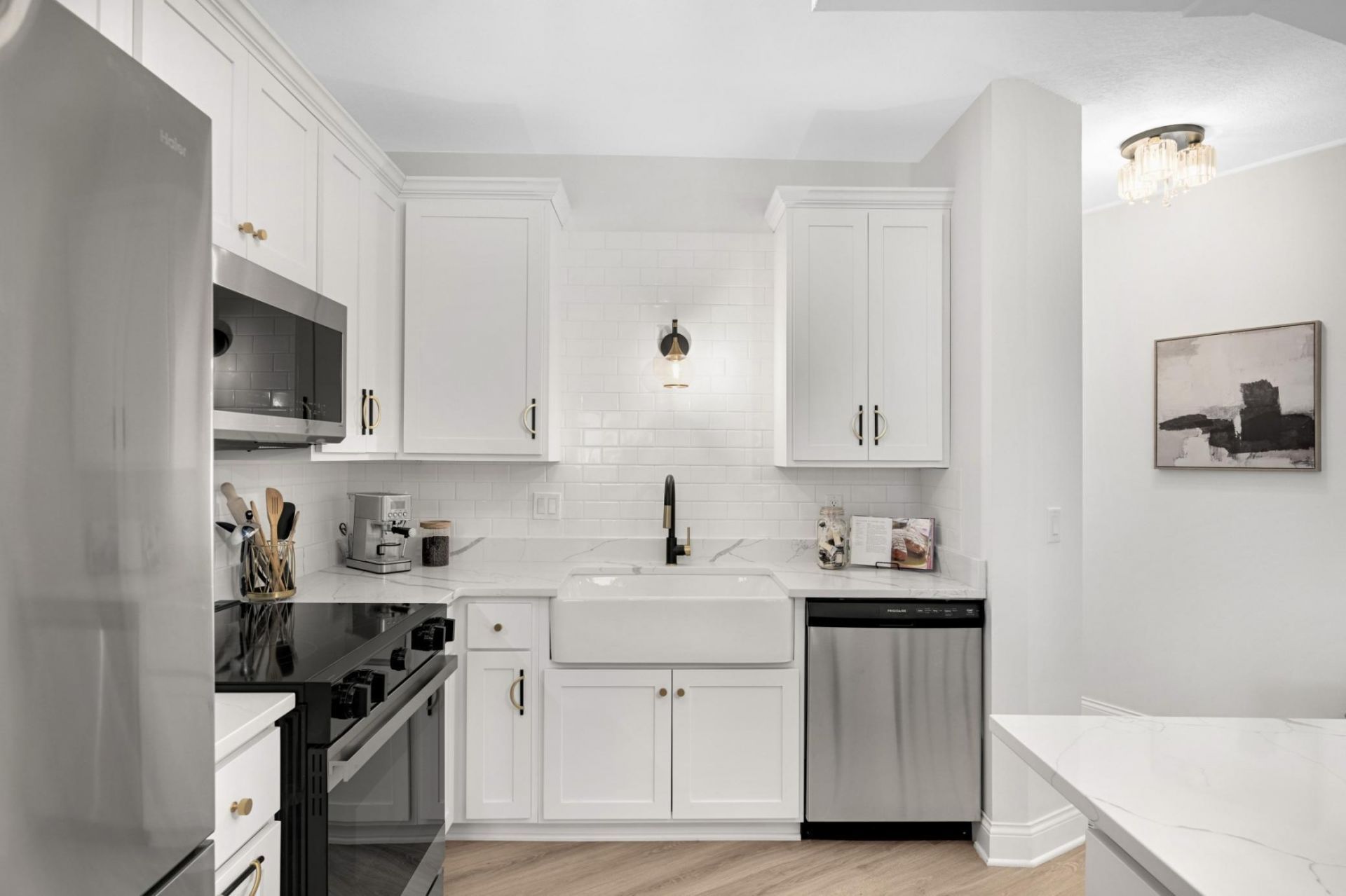 Welcome to the top-floor corner unit residence at Gallery Towers, where spectacular river and downtown St. Paul skyline views take center stage.This completely renovated, fully furnished 1-bed, 1-bath home offers a clean, modern design with true turnkey convenience. High ceilings, expansive windows, and engineered wood flooring create a bright, open living space.The designer kitchen features quartz countertops, new ss appliances, a statement farmhouse sink, and a custom breakfast nook with cushions upholstered in Restoration Hardware fabric ? blending style and function.The living space is anchored by a shiplap feature wall with custom cabinetry and a sleek modern fireplace. Entertain with ease at the stacked stone dry bar, complete with wine fridge and display.Step outside to the oversized private balcony ? a rare offering ? furnished with an outdoor sofa and dining table, creating the perfect setting to enjoy sunset river views and city lights.The king-sized bedroom features dual closets and abundant storage, while the spacious bath showcases a custom board-and-batten accent wall for a refined, spa-like feel.Fully renovated. Fully furnished. Move-in ready. Connected to the Skyway and ideally located just 1 block from Light Rail, and within a few blocks of Xcel Energy Center, and the State Capitol. Exceptional building amenities include a workout room, hot tub/sauna, party room, patio garden area with gas grills, guest suite, and storage locker.Association dues include high-speed internet, cable TV, heat, A/C, water, free laundry on every Underground contract parking available for $88/month. Pet-friendly building.
