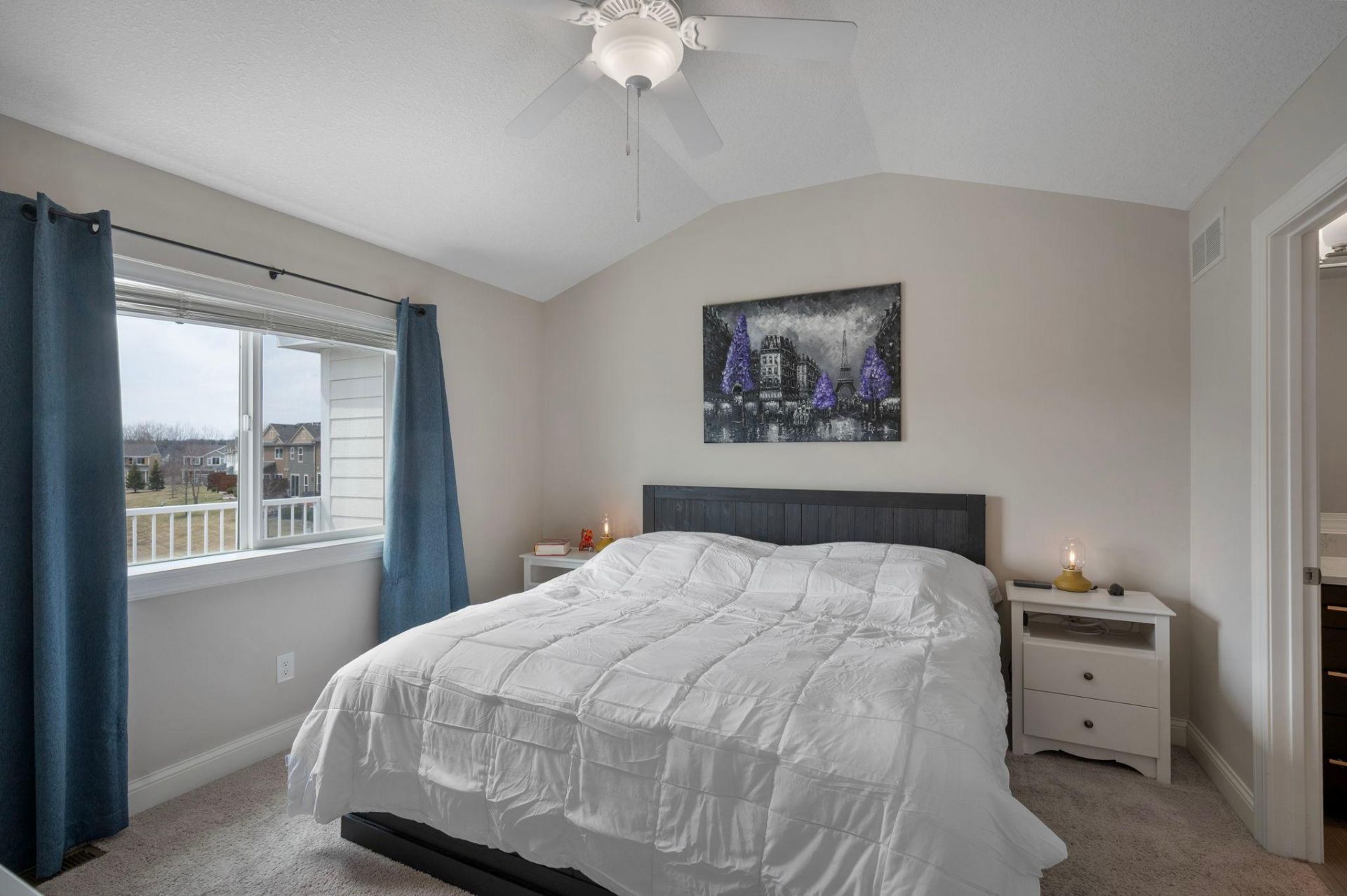 The wait is over, here it is! Gorgeous 3-bedroom, 3-bathroom townhome just a few minutes from the Shoppes at Arbor Lakes. This well-appointed townhome will impress you from the moment you walk in the front door. The open-concept main level allows an abundance of natural light and includes a spacious family room, dining area, h bath, and a kitchen with stainless steel appliances, custom cabinetry, granite counters, and plenty of space for barstool seating. The upper level includes a large primary bedroom with vaulted ceiling, private 3/4 bathroom, and a walk-in closet. Also on the upper level are two additional bedrooms, a full bath, laundry, utilities, and a patio door that walks you out to the large 8x19 private deck overlooking the great parks and open green spaces which offers great privacy. For convenience when hosting, there is an abundance of guest-parking directly across the street! Set up your showing today!